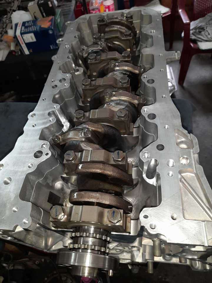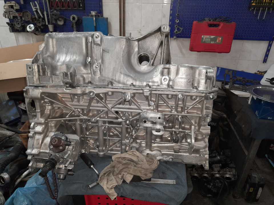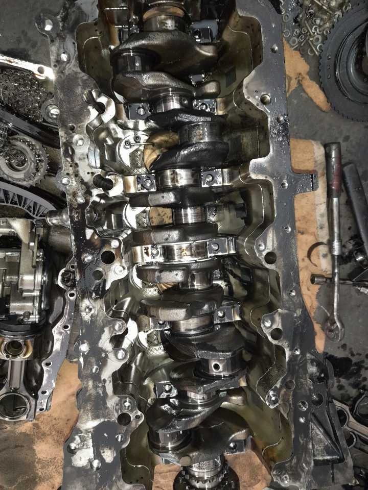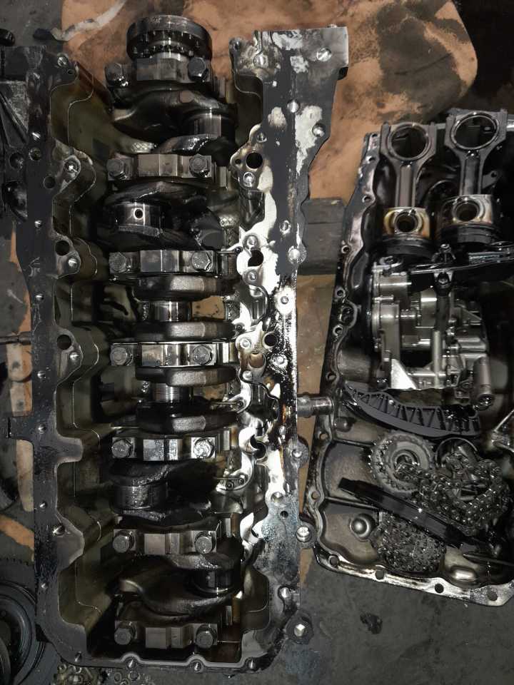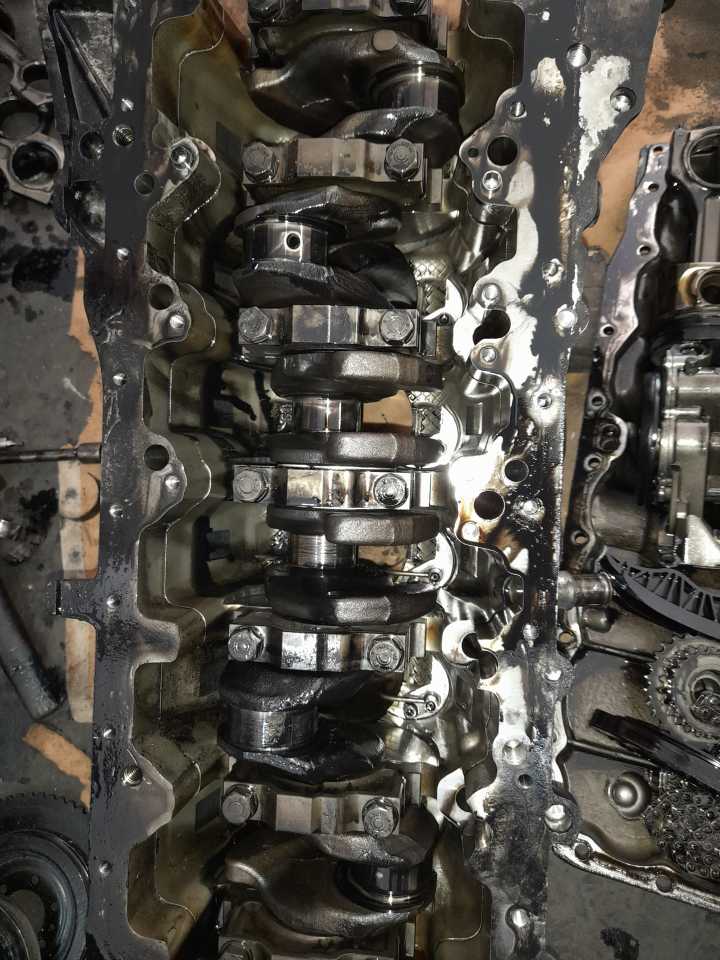 Doteran iz Svajcarske sa zakucanim motorom…..bmw f01 740d n57 ….usled otkazivanja uljne pumpe doslo je do zaribavanja motora i na letecim i lezecim lezajevima pri tom usled lepljenja lezajeva za radilicu i okretanja u konzolama i klipnjacama doslo je do znatnog ostecenja bloka…..trnovan blok….obradjena radilica…servisirane turbine…..sastavljen i radi kao svajcarski sat