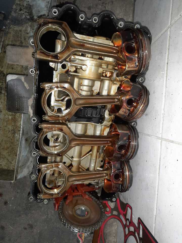 Jako tuzna sudbina jednog prelepog f30 u M paketu….Posto je dospeo u ruke profesionalnih cipera jedina mogucnost da izadje iz aginije mu je bila da umre….Kupio ga je ozbiljan covek i doterao na sredjivanje….neverovatni zvukovi motora,los rad,bez snage…otvaramo motor/osteceni klipovi/2krive klipnjace/zapaljena radilica i epilog svega ispucala glava….obradjena radilica….hilznovan blok…nove klipnjace…novi klipovi….nova glava motora….vracen orginalni program i auto je ponovo u svom sjaju…motor radi kao satic u punoj fabrickoj snazi…