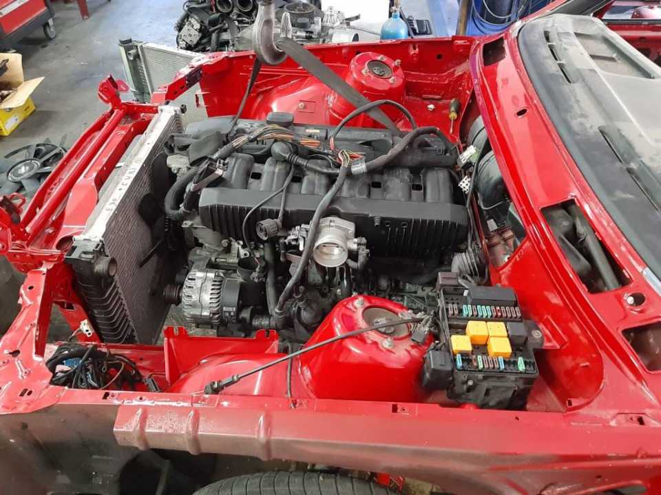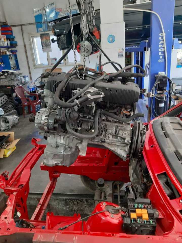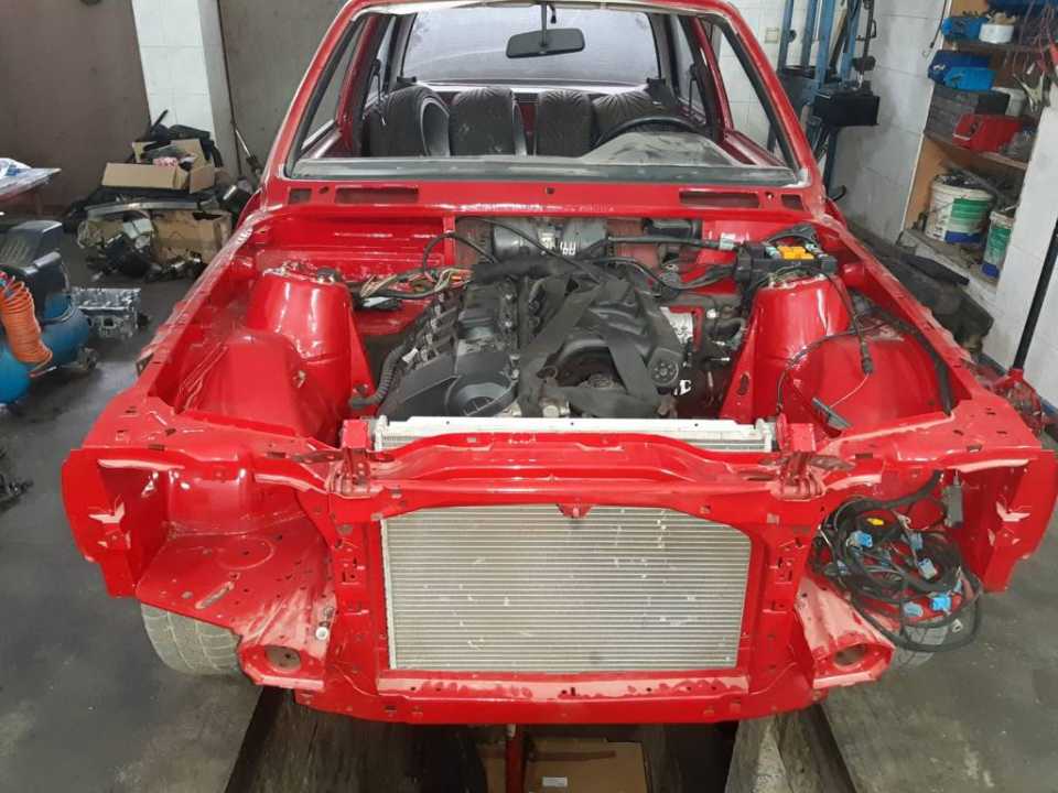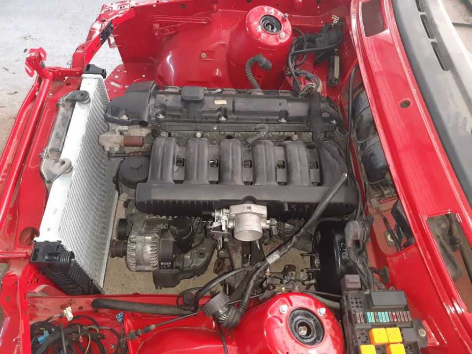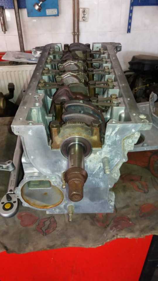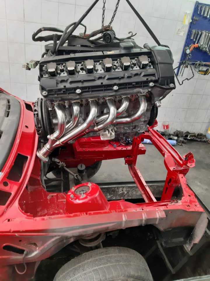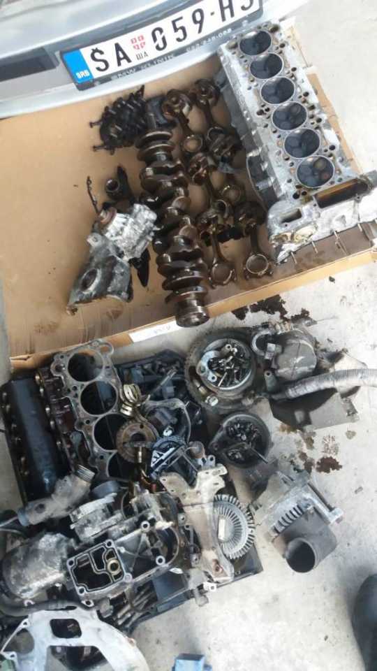 I tako jednog dana iz daleke Skandinavske zemlje Svedske stigao nam je motor m52b28 izvadjen iz e36 koji treba da ubacimo u kockicu….Bez nesto preteranog mudrovanja odlucujemo se da ipak otvorimo motor iako je navodno odlican….Ipak s obzirom da je dosao iz napredne evropske zemlje gde se motori vade iz auta pomocu brusilice i plinskog sekaca i propisno skladiste,stanje mu uopste nije bilo zavidno….zauljen…zardjale bregaste…nekoliko zalomljenih srafova…pukao cosak bloka… izvadjen iz mocvare….osakacena instalacija i citaci motora……Ponovo izazov….Krecemo…I taman kad smo se izborili sa motorom dosla je jos veca muka-karoserija…..spoljni limovi prilicno dobro ofarbani ali zato sve ostalo sto se na prvi pogled ne vidi -smandrljano….deo tog kupusa ispraljamo i krecmo sa pakovanjem motora…