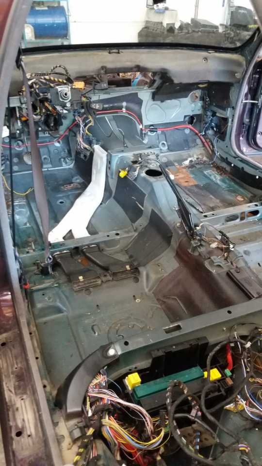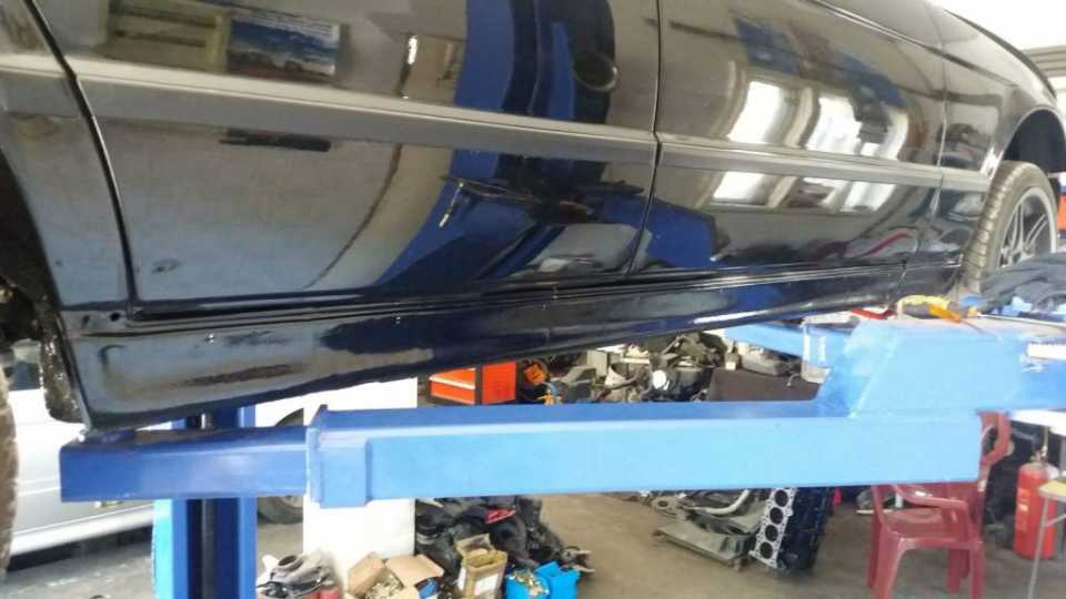 Kompletna restauracija….na prvi pogled delovao je kao prilicno dobar auto, medjutim kad je raspremljen karoserija je pokazala svoje tajne.…udaran pa popravljan ali najveci problem je bila rdja protiv koje smo vodili najvecu borbu….pored limarije cak su i delovi trapa bili za zamenu jer su propali od korozije….Krecemo u borbu obnove jedne 540 koja zasluzuje pun tretman….raspremamo kompletan auto i podizemo skoljku na rotator radi lakseg i jedino moguceg pristupa svim ostcenim delovima….nakon krpljenja ostecene limarije sledi kompletna zatita i farbanje poda.Nakon toga sledi postavljanje novih vodova za gorivo i kocnice a zatim vracanje kompletno opeskarenog -ofarbanog i remontovanog ogibljenja.Kocnice takodje kompletno remontovane i ofarbana kociona klesta.Zatim sledi farbanje i ponovno sastavljanje auta uz remont ili zamenu svih dotrajalih delova.Rezultat vise nego zadoljavajuci ,cast nam je bila vratiti ovakav auto ponovo na put…..